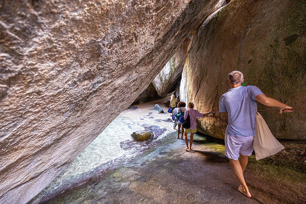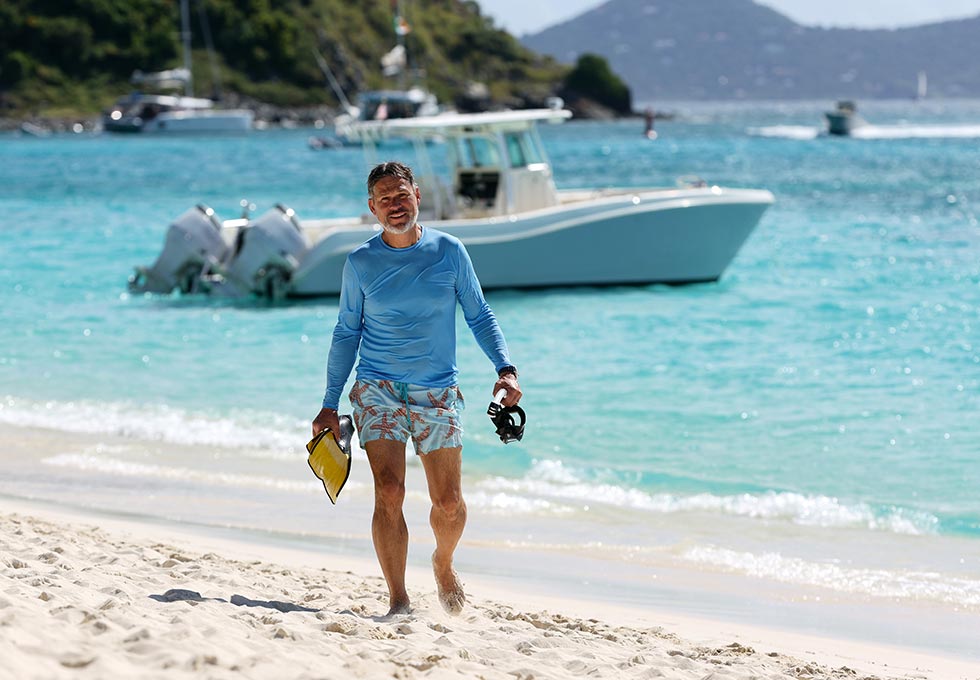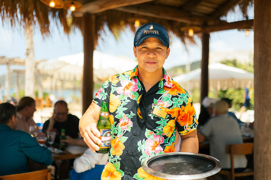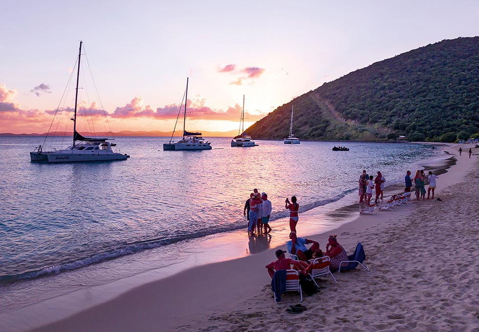 Mit dem Zodiac geht es an den Strand, und abends legt das Schiff nahe Foxys berühmter Beach Bar an – in ausgelassener Stimmung schmeckt der „Painkiller“ besonders gut.