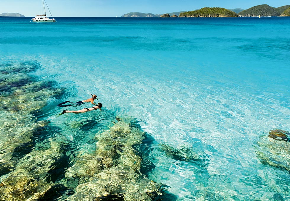 Die Britischen Jungferninseln verteilen sich wie eine Perlenkette im Meer.