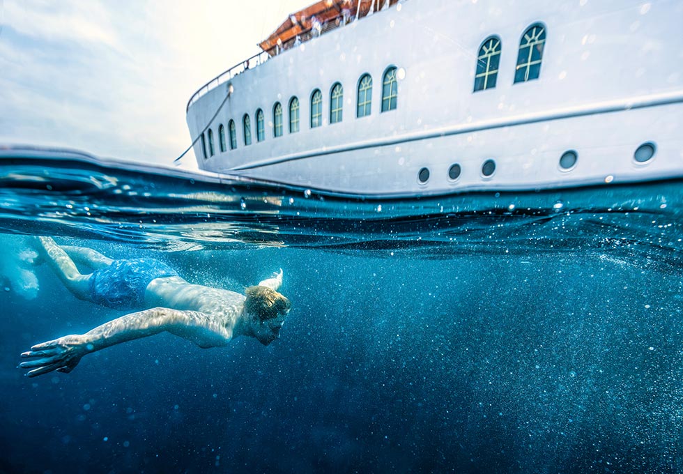 Der schönste Pool der Welt: Mit den SEA CLOUDs ist das Meer stets zum Greifen nah. Worauf haben Sie Lust? Auf einen Badestopp mitten im blauen Ozean, Schnorcheln am farbenfrohen Riff, Stand-up-Paddeln oder eine adrenalingeladene Fahrt mit dem Towable Tube? Springen Sie mitten rein ins Karibik-Feeling – hier ist Erholung erfrischend einfach.