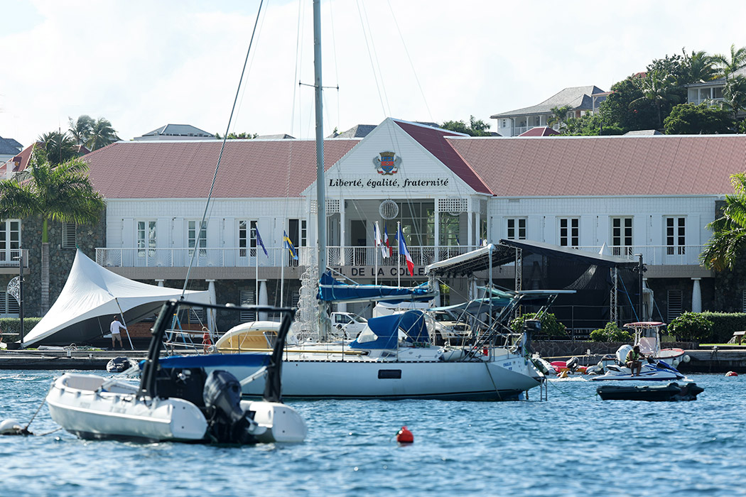 Die SEA CLOUDs liegen vor Gustavia auf Reede und Sie nähern sich mit dem Tender den luxuriösen Mega-Yachten in der Marina.