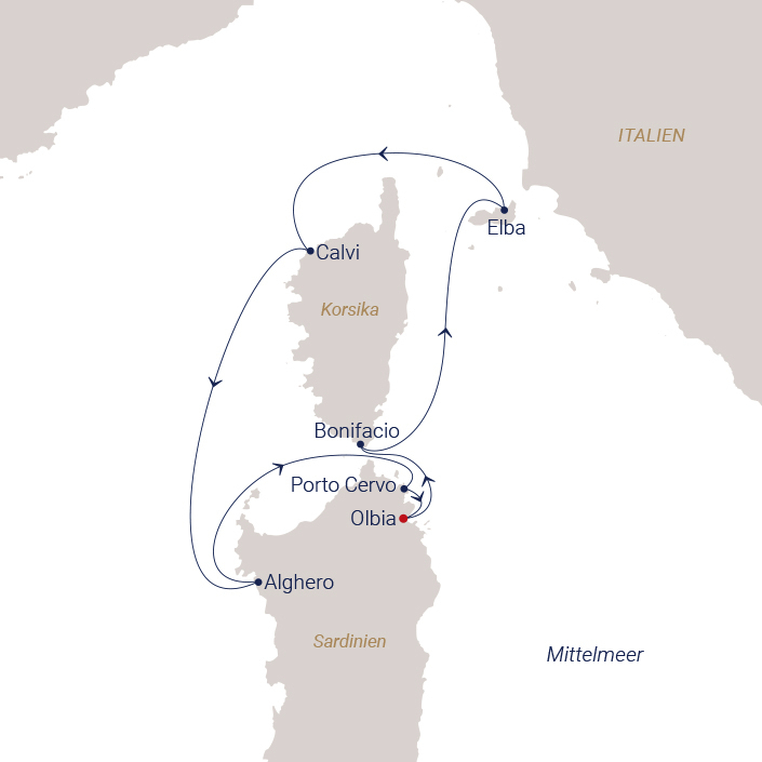 Mit Sardinien, Korsika und Elba drei legendäre Inseln auf einer Reise erleben