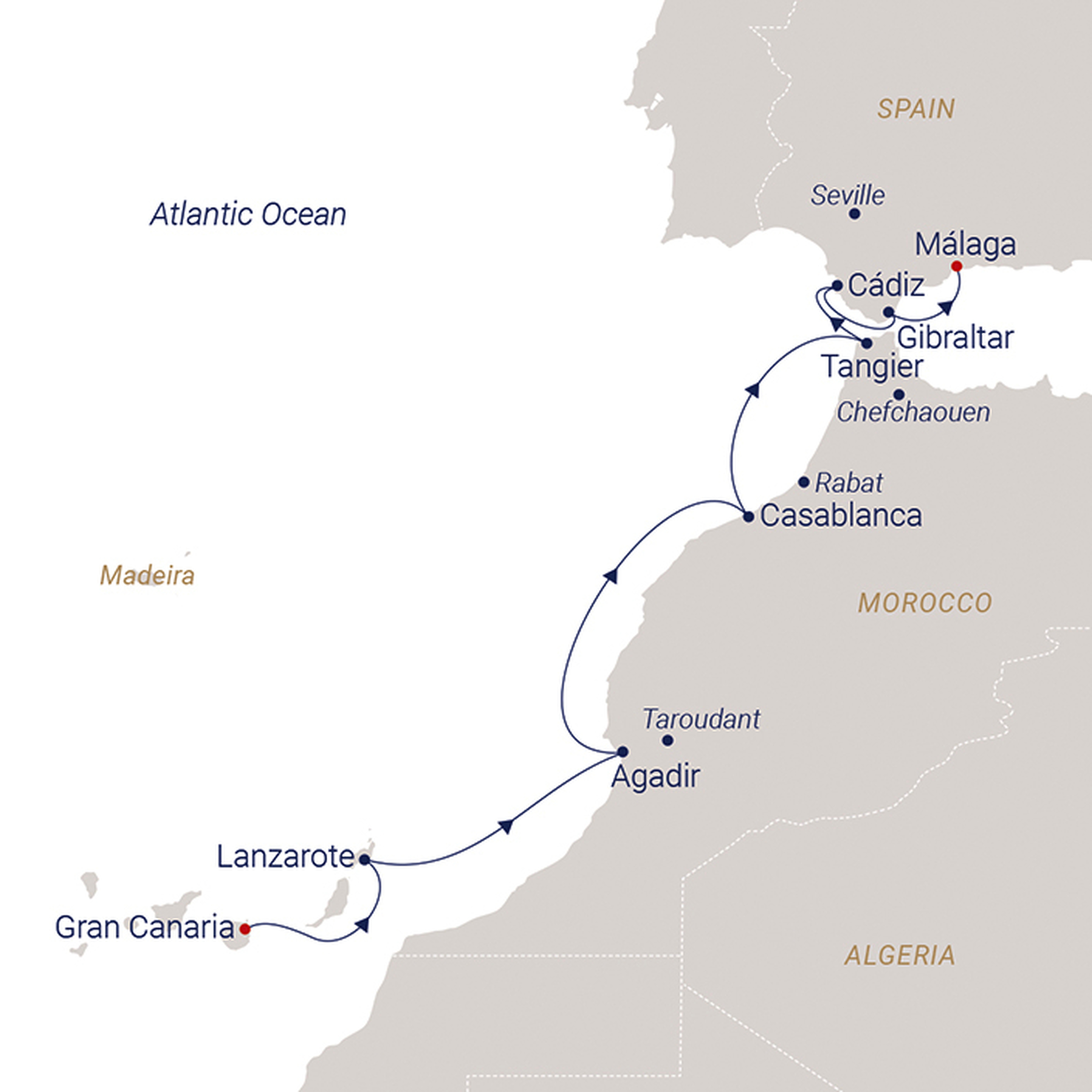• Very British: The enclave of Gibraltar and its striking Monkey Rock are iconic landmarks along our stops.