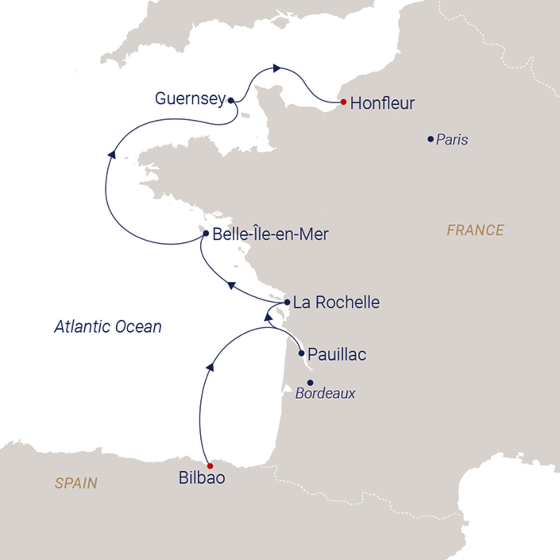 Dine on fresh seafood, drink in fine wine between the Basque country and Normandy